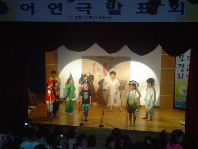 6월 15일 금요일 늦은 7시부터 기적의도서관 강당에서는 영어연극 2개반 어린이들이 제이미 선생님과 3개월 동안 준비한 연극을 가족 및 친구들을 초대해 발표회를 갖었습니다. * 연극제목 : Peter Pan(월요일반) / Snow white, Cinderella and Friends(금요일반)