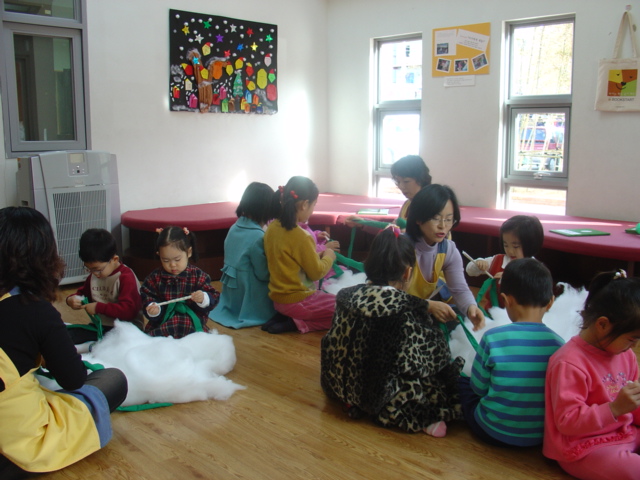 지금 아이들이 선생님과 무엇을 만들고있을까요? "크릭터" 그림책을 보고 , 나의 크릭터(보아뱀일종) 만들기 실습중입니다. 모두들 참 열심히들하죠?^^