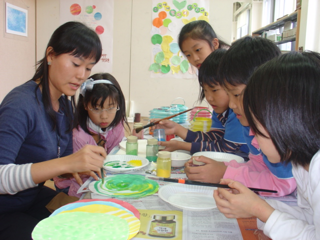 10월 전시 "꿈꾸는 동그라미" 원화전의 체험행사로 김윤이 작가 선생님과 함께한 "나만의 꿈꾸는 동그라미 만들기"... 동양화에 쓰는 분채물감으로 예쁜 색깔을 만들어서 한지에 나만의 꿈꾸는 동그라미를 만들어 보았습니다.