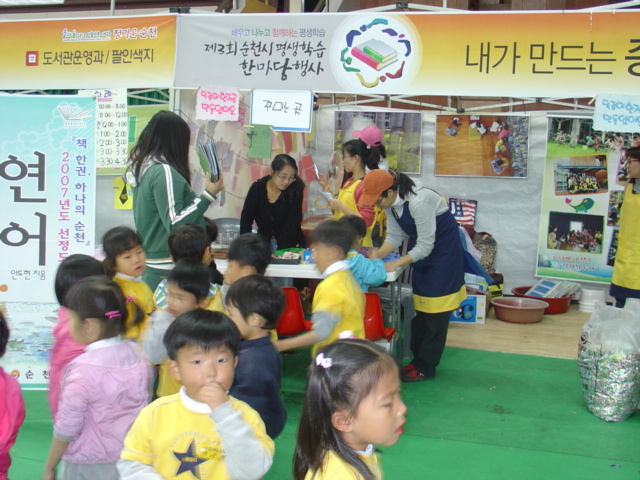 "배우고 나누고 함께하는 평생학습~" 제3회 순천시 평생학습 한마당 행사가 11월1일(목)~11월4일(일)까지 4일간 팔마체육관 실내와 실외에서 진행되었습니다. 기적의도서관도 행사에 참여해 "내가 만드는 종이, 내가 만드는 책"이란 수제종이를 만들어 책으로 꾸며보는 체험 부스를 운영했습니다