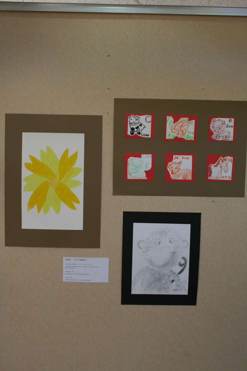 12월 전시는 원어미 에이브릴 선생님과 초등 3~5학년 24명의 아이들이 10주 동안 수업시간에 만든 작품들을 전시합니다. "Art in English"는 원어민선생님과 영어로 된 그림책을 함께 보고 예술작품을 만들면서 영어단어와 구절들을 배우고 익히는 영어프로그램입니다.