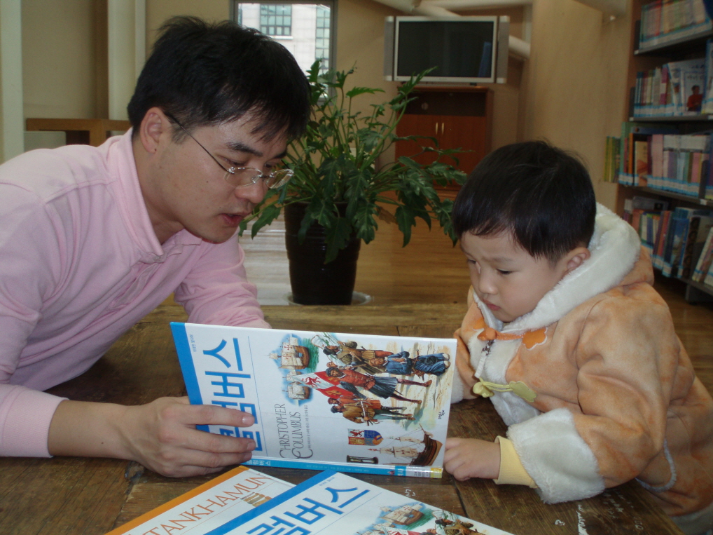 기적의도서관에서 자주 볼 수 있는 모습 바로 아빠가 책읽어주는 모습입니다~~