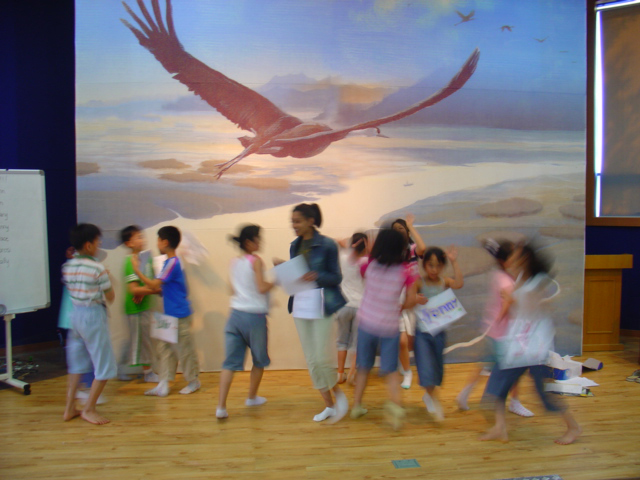 매주 금요일 오후 4시 강당에서 원어민 선생님 베네사와 함께 영어연극 교실을 진행하고 있습니다.