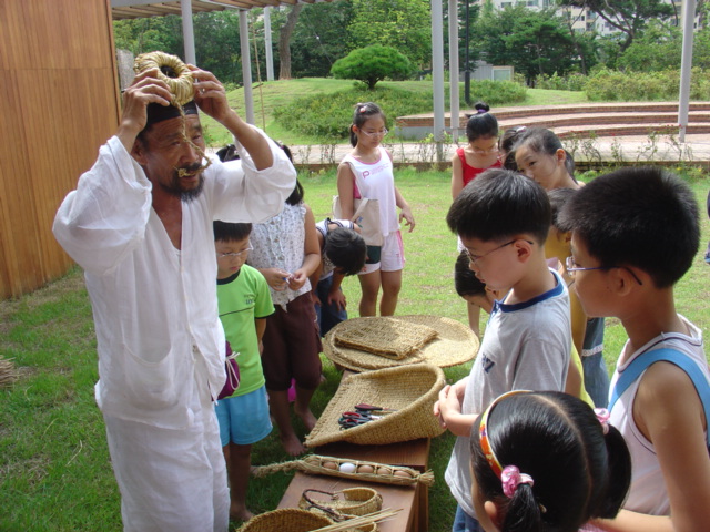 8월 전시인 "보리타작 하는 날"과 연계 체험행사로 8월 23일(수)에는 낙안읍성에서 거주하고 계신 임채지 선생님을 모시고 아이들과 짚풀로 만들기 체험을 했습니다.