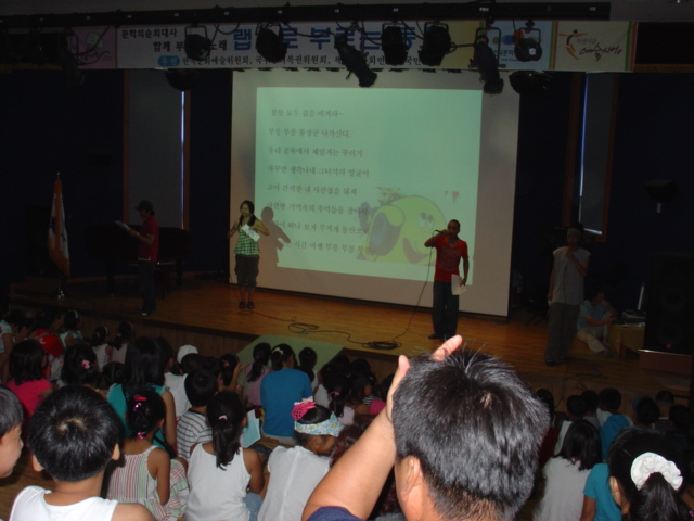 8월29일(화) 3시에는 가수 2혼과 HBK, 이영우를 초청하여 함께 부르는 노래 "랩으로 부르는 동요" 공연이 있었습니다. 아이들과 함께 부모님도 참석하셔서 아이들에게 친숙한 동요를 랩으로 따라 부르는 즐거운 시간을 갖었습니다.