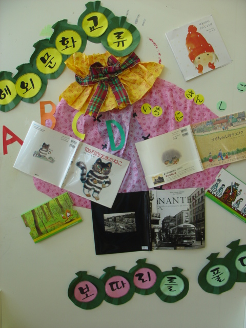 10월 전시의 주제는 "해외문화교류"로 순천시와 결연을 맺은 프랑스 낭뜨시에서 보내준 프랑스 그림책 20권과 우리나라 그림책 중 일본어로 출판된 그림책 반대로 일본 그림책 중 우리나라에서 출판된 그림책들을 모아서 전시하고 있습니다.