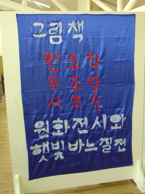11월 전시는 그림책 "한조각 두조각 세조각" 원화전시와 김혜환 선생님의 바느질 작품들로 2층 전시실을 꾸몄습니다. 선생님이 손바느질로 만드신 작품들과 함께 평소 쉽게 접해보지 못한 다양한 바느질 도구, 염색 재료 등을 함께 전시하고 있습니다.