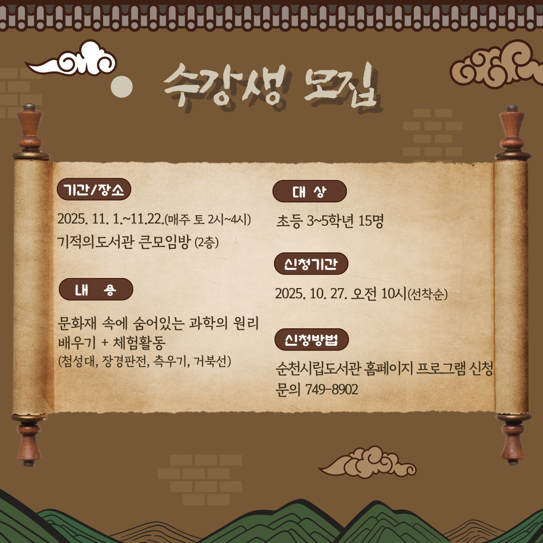 ☘ 신청방법 : 순천시립도서관 홈페이지 프로그램 신청