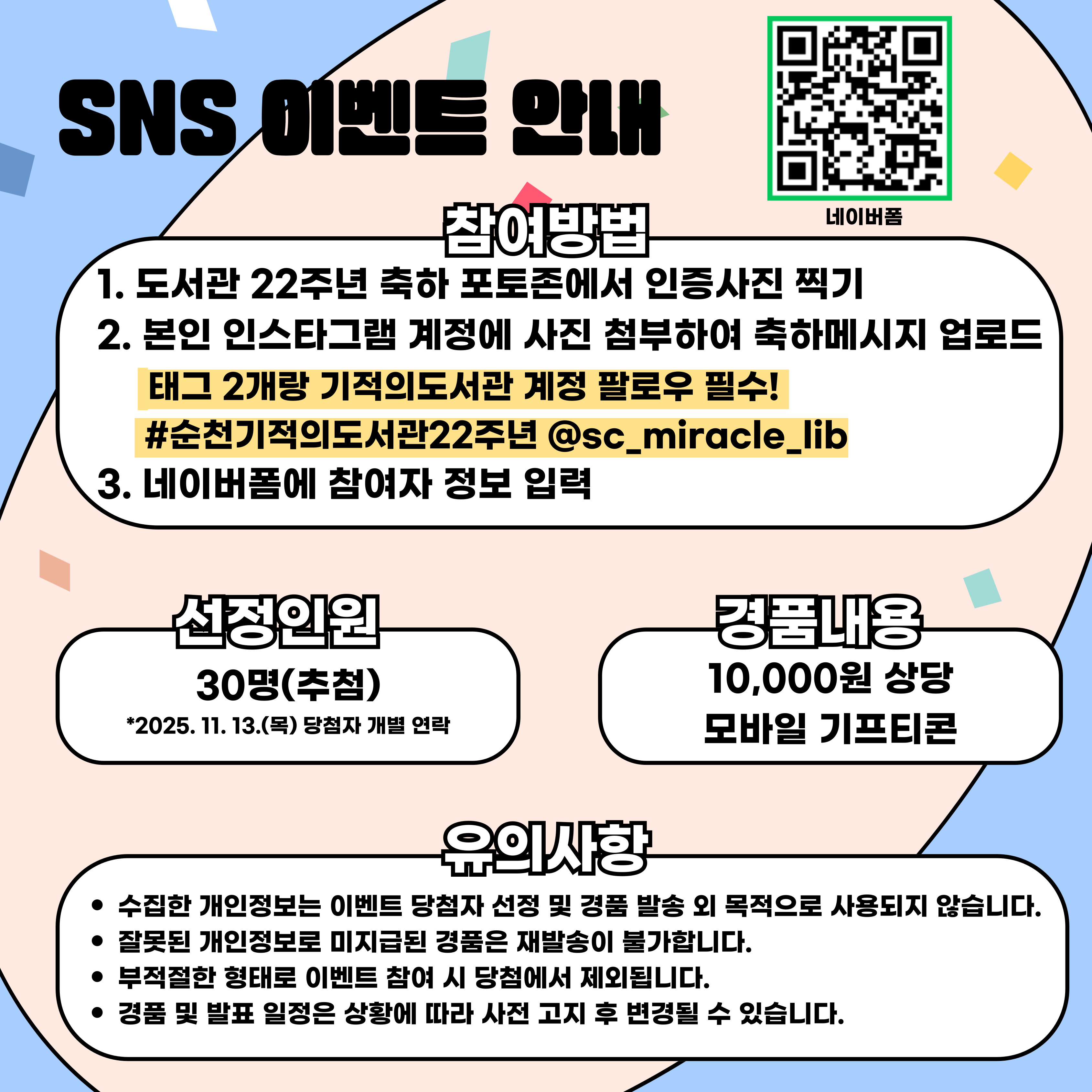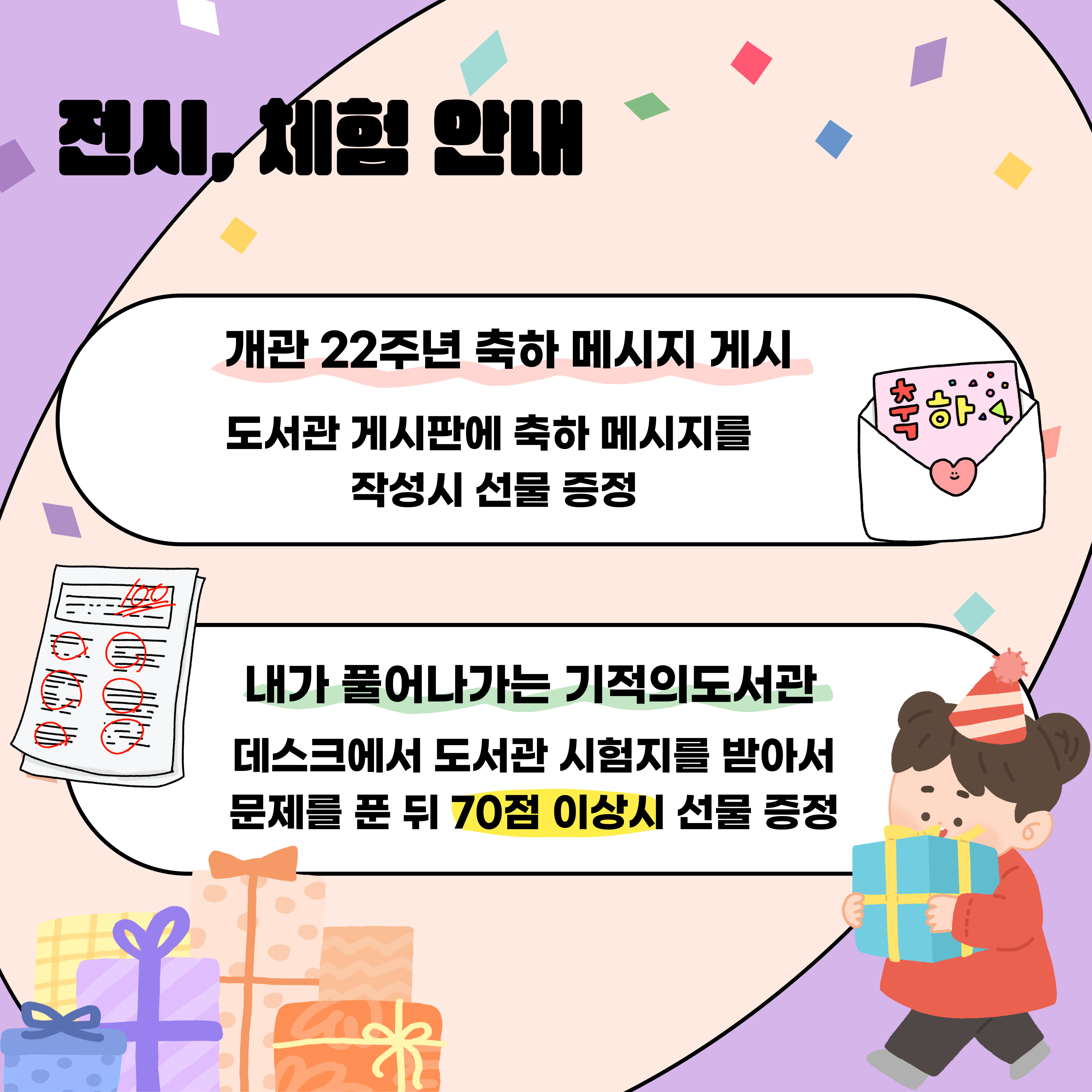 (전시) 도서관 게시판에 축하 메시지 작성시 선물 증정