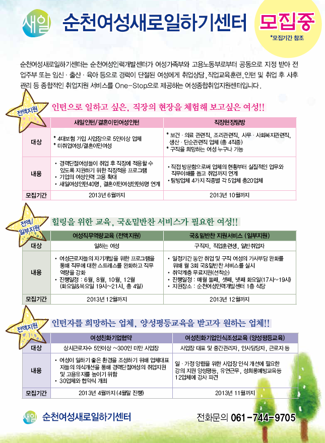 일을 갖고 싶은 여성 누구나 신청하세요!