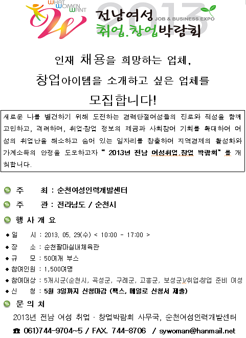 2013년 전남여성 취업.창업박람회 참여업체모집 - 순천