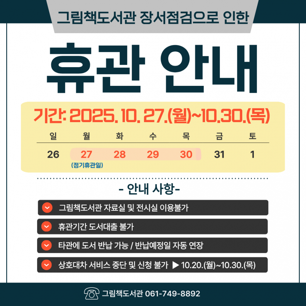 그림책도서관 장서점검에 따른 임시 휴관 안내