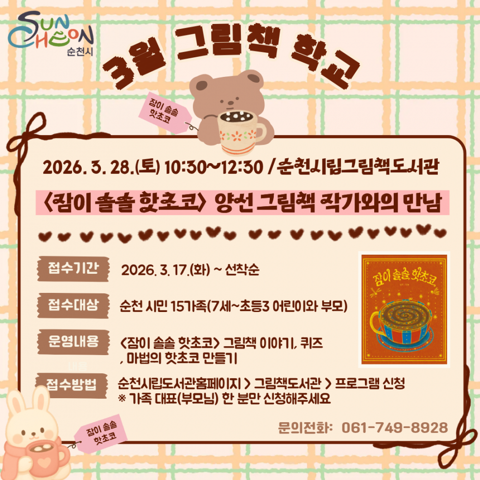 [프로그램] 3월 그림책학교 안내 등록자그림책도서관 등록일26-03-04 16:57 많은 참여부탁드립니다:) 목록 이전글제31회 그림책 원화전시 <이우만 작가>와의 만남 다음글2026 상반기 프로그램 안내