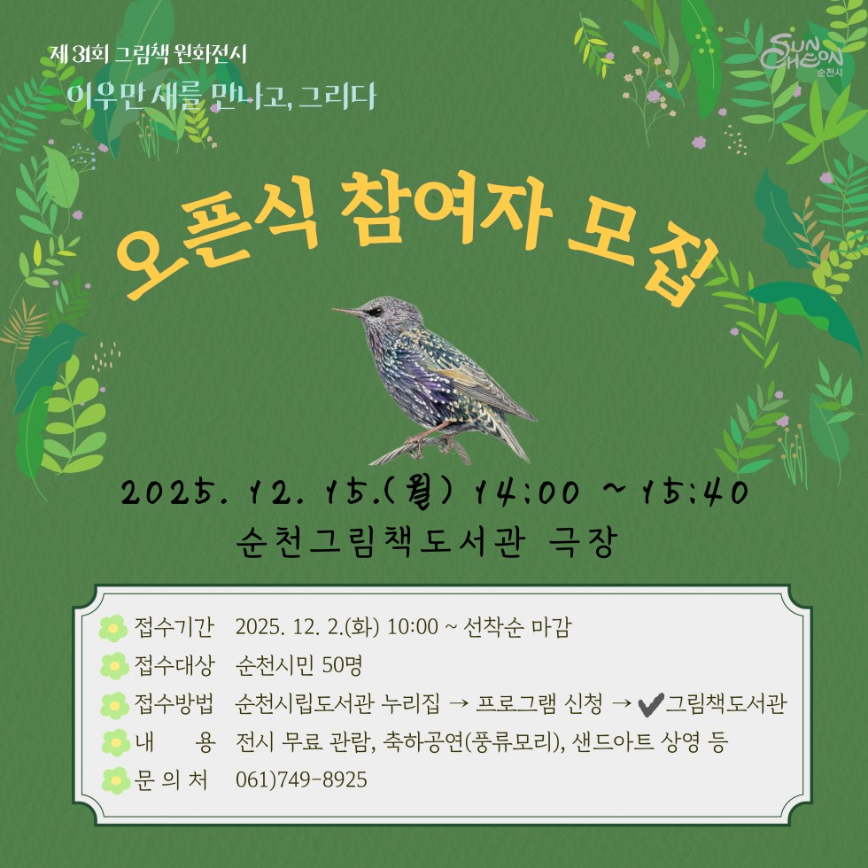 -방 법: 순천시립도서관 누리집 → 프로그램 신청 → 그림책도서관 선택