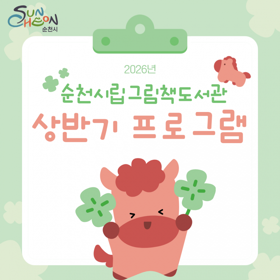 [프로그램] 2026 상반기 프로그램 안내 등록자그림책도서관 등록일26-02-26 16:35 2026 상반기 프로그램 안내 많은 참여부탁드립니다. 목록 다음글그림책도서관 제31회 원화전시 '이우만 작가와의 만남' 안내
